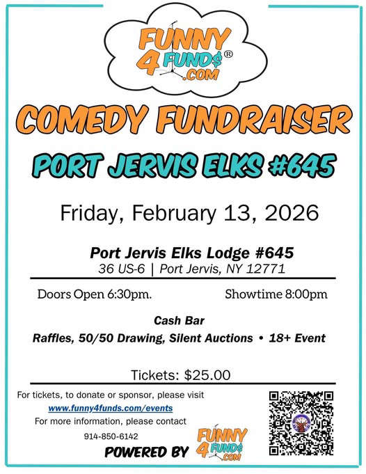 Port Jervis Elks Comedy FundraiserJoin the community to laugh and enjoy a night out to benefit the Port Jervis elks #645