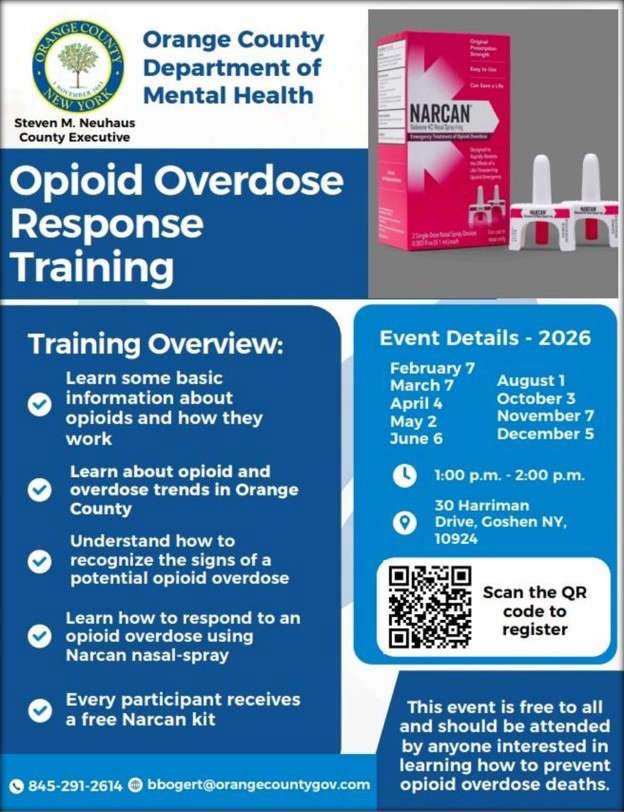Orange County Executive Neuhaus Announces Free Naloxone (NARCAN) TrainingsFebruary 7th 2026